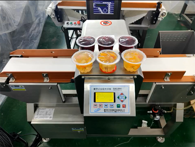 連之新DLM-509Y2010型金屬檢測機使用現(xiàn)場,有金屬的物品可以做到自動檢測并剔除。