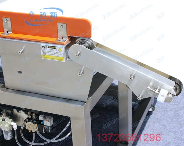 7.檢測(cè)到金屬異物,輸送帶前端部分下沉分流排除異常產(chǎn)品!